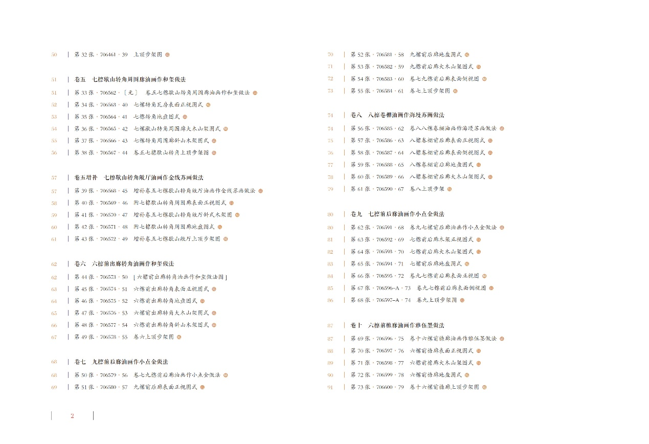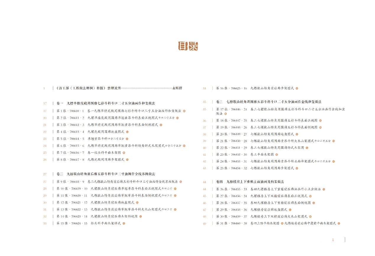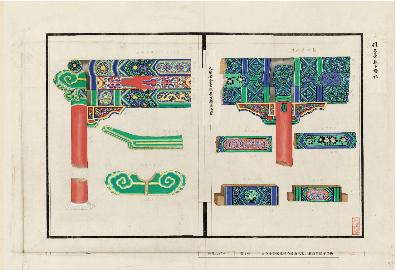 现存朱启钤“补图”共计563幅,其中彩图140余幅,分为27卷加10个附录,基本对应于《则例》卷目。
